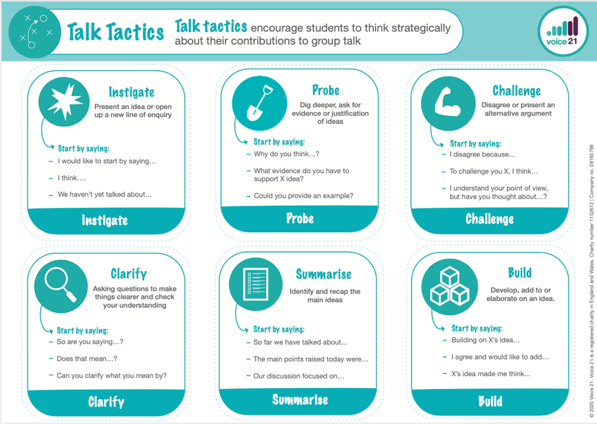As a part of high-quality oracy education, students should learn both to talk and through talk, deepening their subject knowledge and understanding through classroom talk which has been planned, structured, and scaffolded to enable students to learn skills needed to talk effectively.